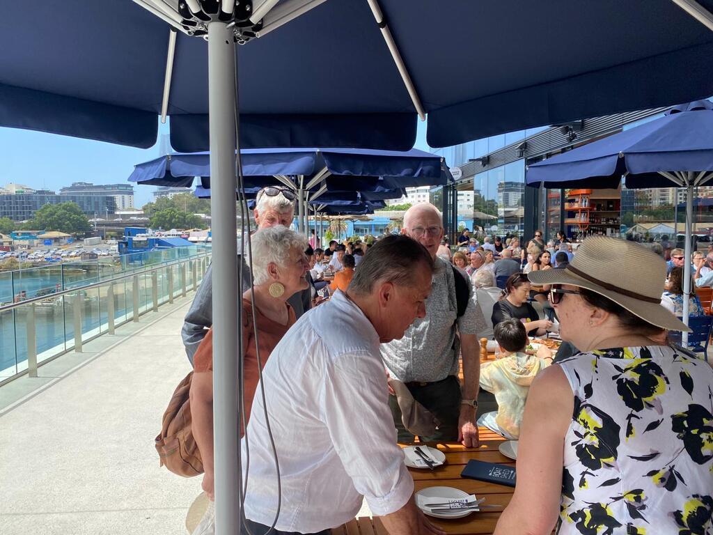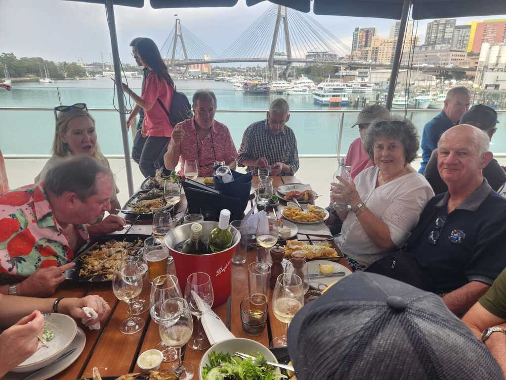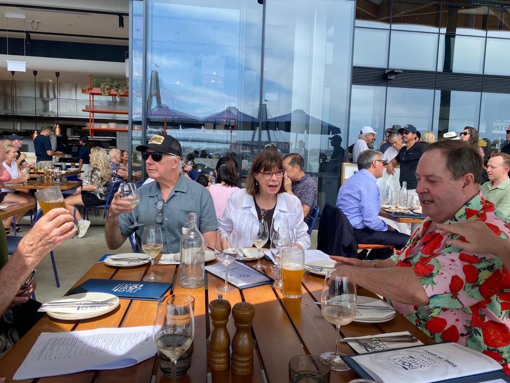 Sydney turned on one of those perfect, smugly beautiful Fridays — blue skies, a teasing breeze off Blackwattle Bay, and just enough sunshine to justify knocking off early for “cultural reasons.” What better excuse for the Larrikins and partners to descend on the brand‑new Sydney Fish Market for a long lunch at the Pyrmont Boatshed.
