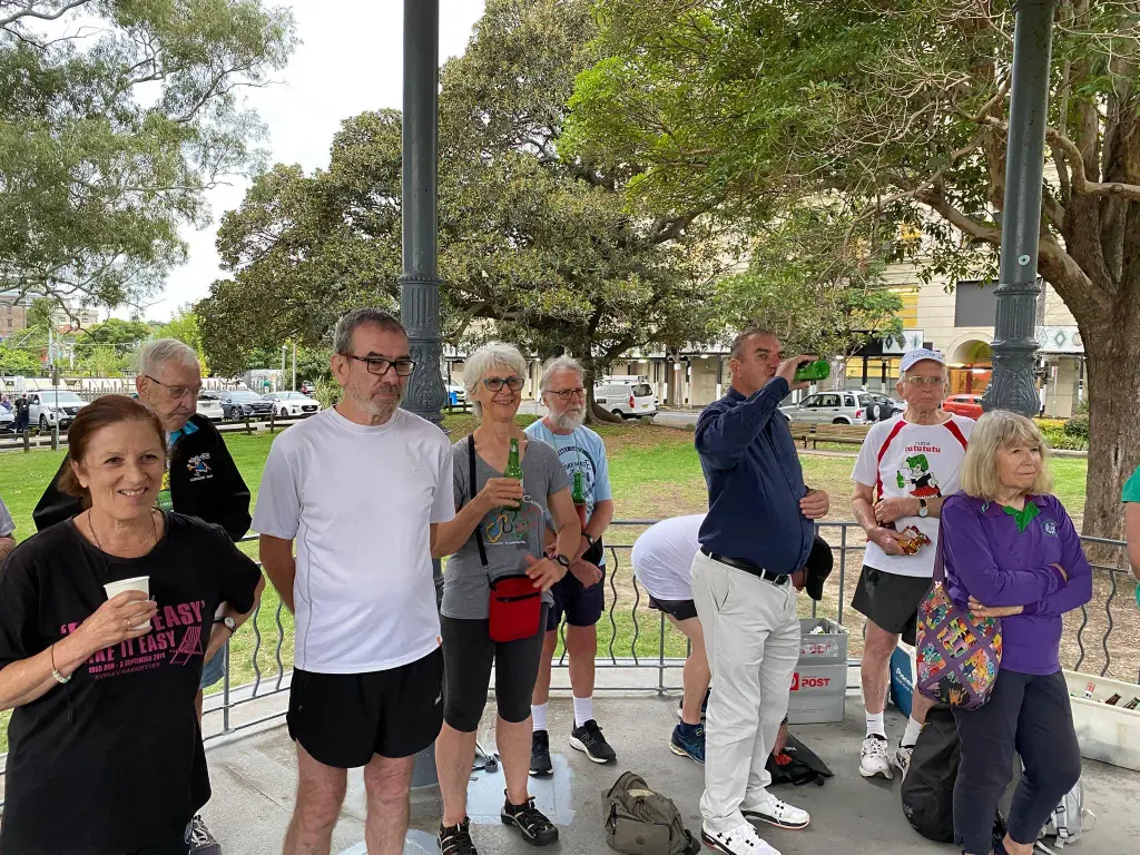 Basically, they ran, walked in a huge circle heading to RPA along Missenden Rd, weaving through the back alleys to the entry of St Stephens Cemetery to a check. Down the laneways of Newtown & many graffiti decorated walls and over to the edge of Stanmore. Down Stafford St where I once lived, to a check on Bridge St, trail heading to Parramatta Rd before diverting across a canal. Passing more graffiti the runners reached Australia St crossing to Camperdown Park, with many people also outdoors enjoying playing other sport basketball and footy training. There was a good bunch of front runners say eight who came in quickly, soon followed by the rest of the pack.