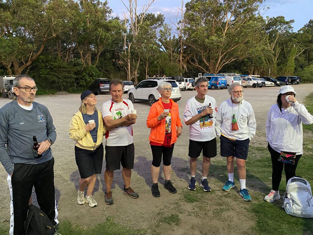 The run was basically my last run done the other way round, which necessitated a few changes as it’s interesting what can’t be done backwards!!! This meant everyone had to run through the sandblast as they had anticipated we’d start the other way – fools. The start stayed flat, except for the odd uphill on back till the runners/walkers split when the hills started in earnest for the runners. Tantalising glimpses of the sea were had, were we going to get to Manly Beach? No, but close. Up and down another hill making great use of all the lane ways that abound, close to the ocean over the Queenscliff Bridge, then back through Nolan and Passmore Reserve to the bucket. Walkers were first in having done 3.5km in 45 mins. First runner was VENERABLE but doesn’t count as he admitted to short cutting the end with superior knowledge from his Queenscliff days. The first real runner in was BEJESUS in 55mins (so glad I also shortened the run as we’re not getting any younger) who true to form was unable to say anything other than sound as if he was about to die. Everyone back within the hour including AFTERBIRTH who proudly said he’d run 6.6km and kept up, more or less, with the frontrunners.