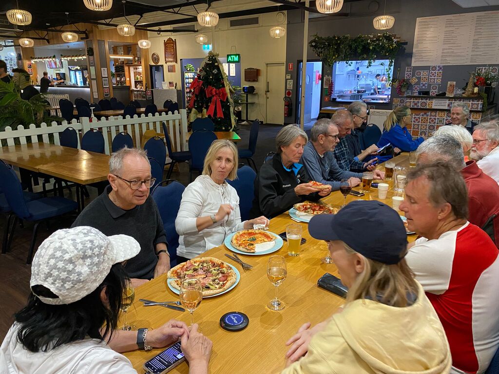 The On On at the club was good as it was Specials night with $18 pizzas and $7 wine and beer. I think everyone went home either full or clutching takeaway boxes. The only slightly hungry person was FETCHIT who on getting up to fetch some beers left his pizza unguarded, and VENERABLE thinking he’d gone home (despite FRANKLY still being there) scooped up a quarter of it.