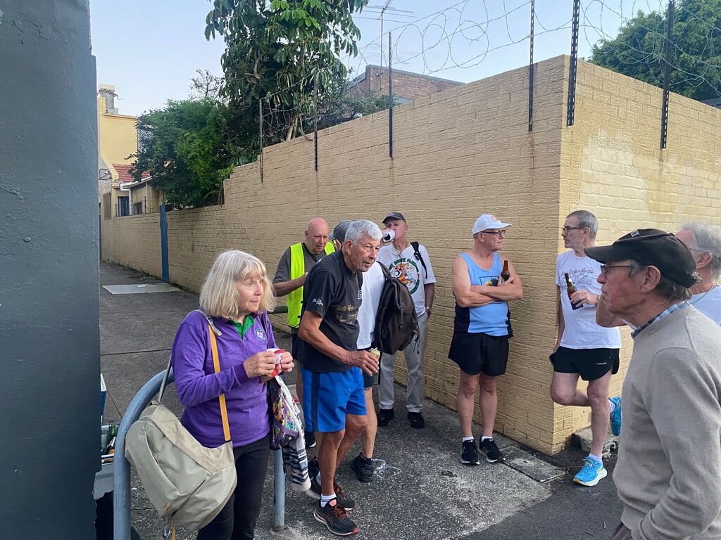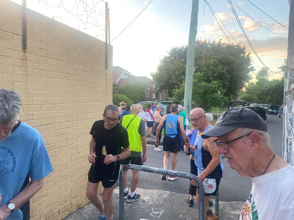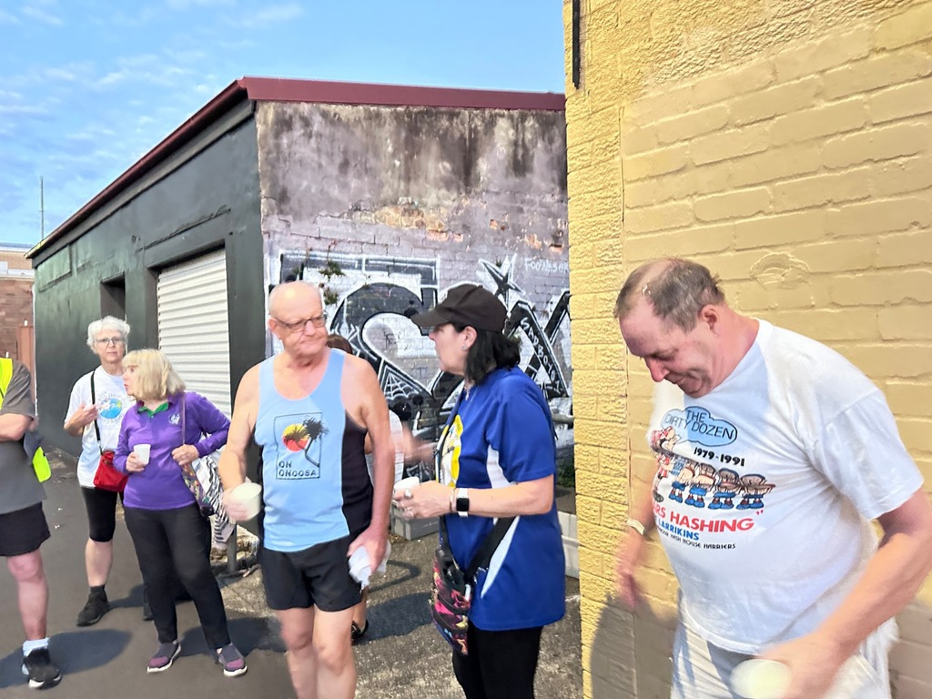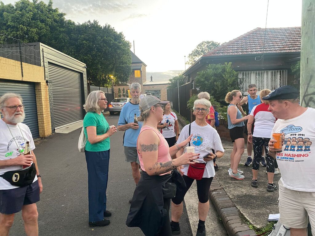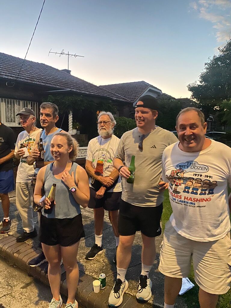 About 18 odd Hashers headed off at 6:30pm on the tick. Crossed Vic. Road outside the Bayview and down Cowell Street for a long rambling run/stroll east along Tarban Creek. Emerging at Victoria Road crossing at Crown Street. The pack then went into the Asylum -Hospital grounds where the S-walkers peeled off from the runners at Suttor Street; the L-Walkers at Ashburn Place .