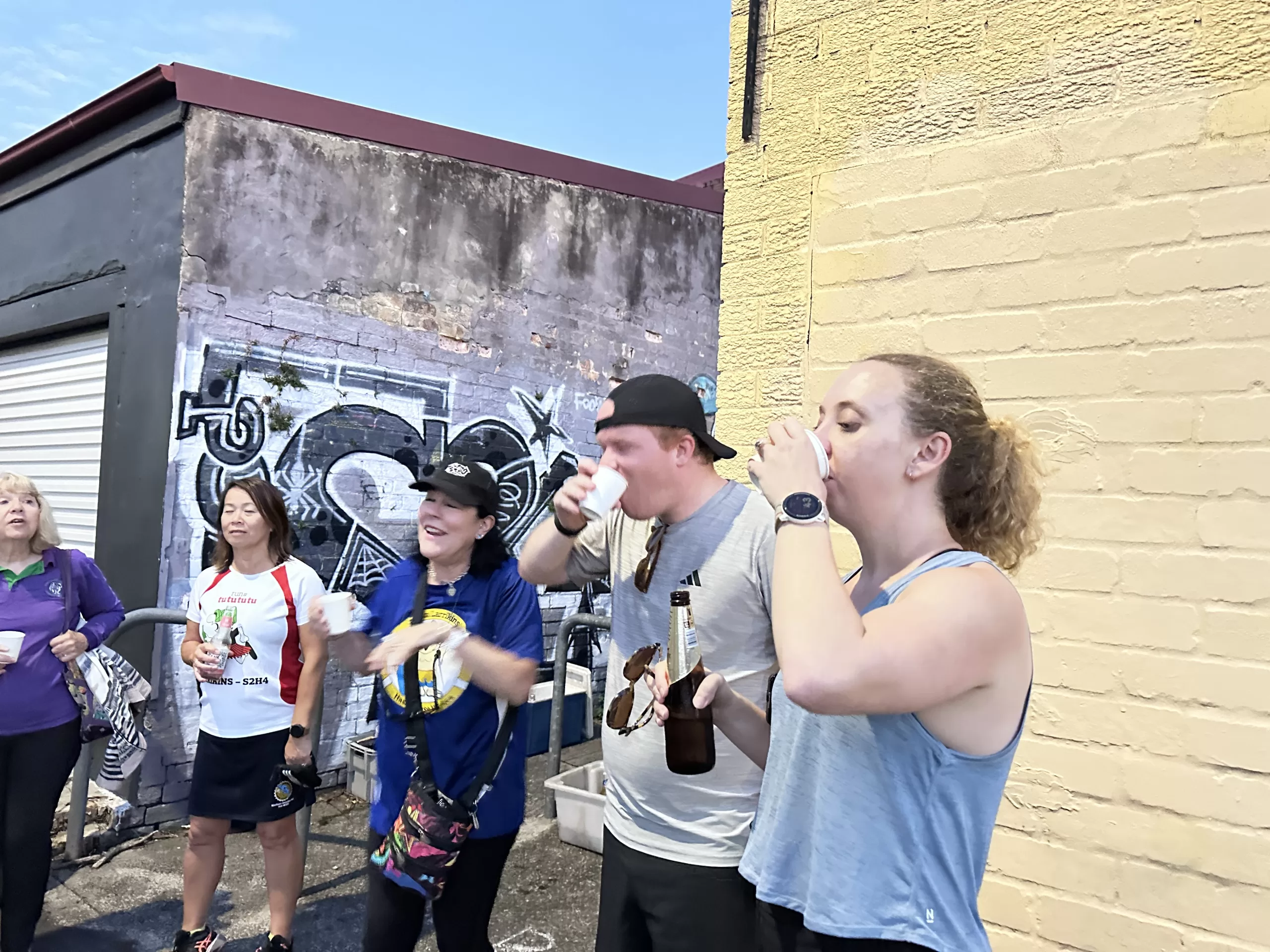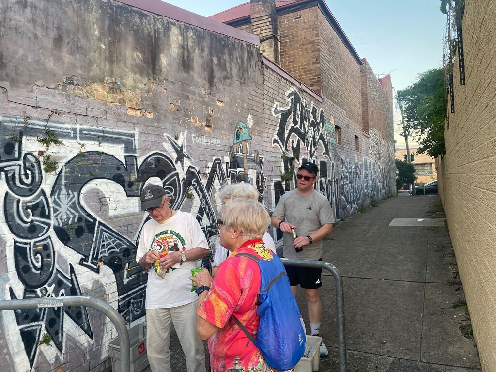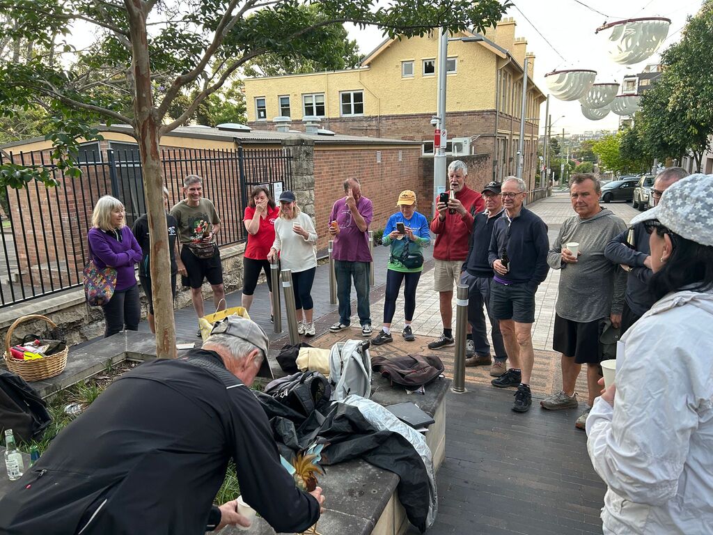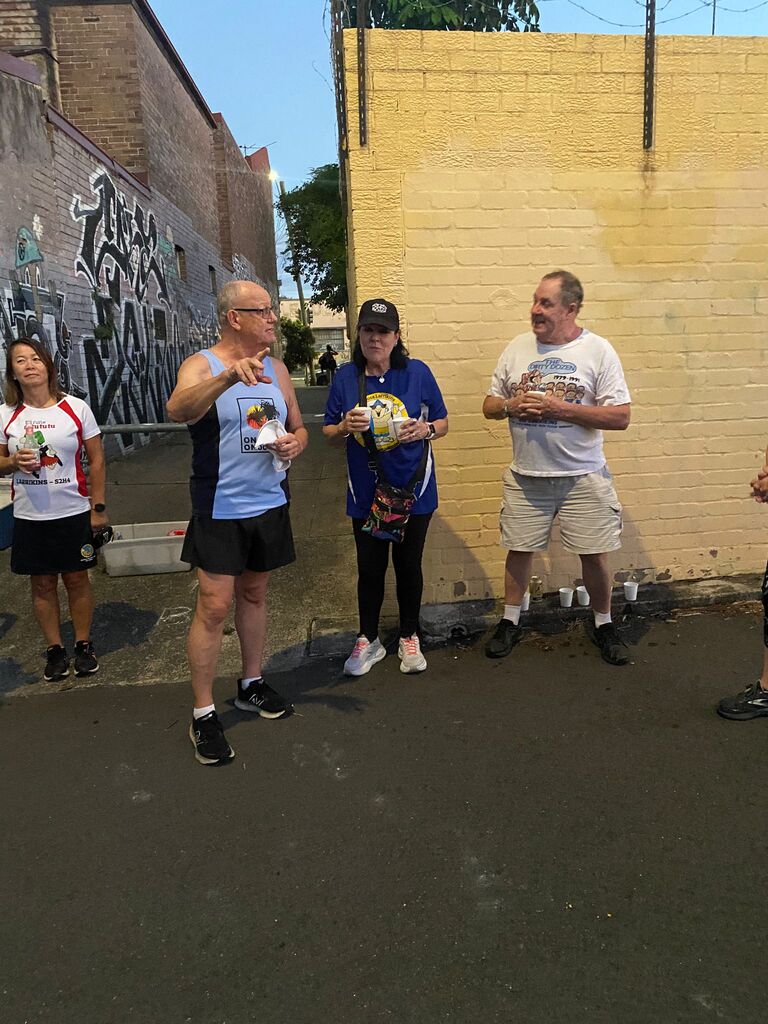 About 18 odd Hashers headed off at 6:30pm on the tick. Crossed Vic. Road outside the Bayview and down Cowell Street for a long rambling run/stroll east along Tarban Creek. Emerging at Victoria Road crossing at Crown Street. The pack then went into the Asylum -Hospital grounds where the S-walkers peeled off from the runners at Suttor Street; the L-Walkers at Ashburn Place .