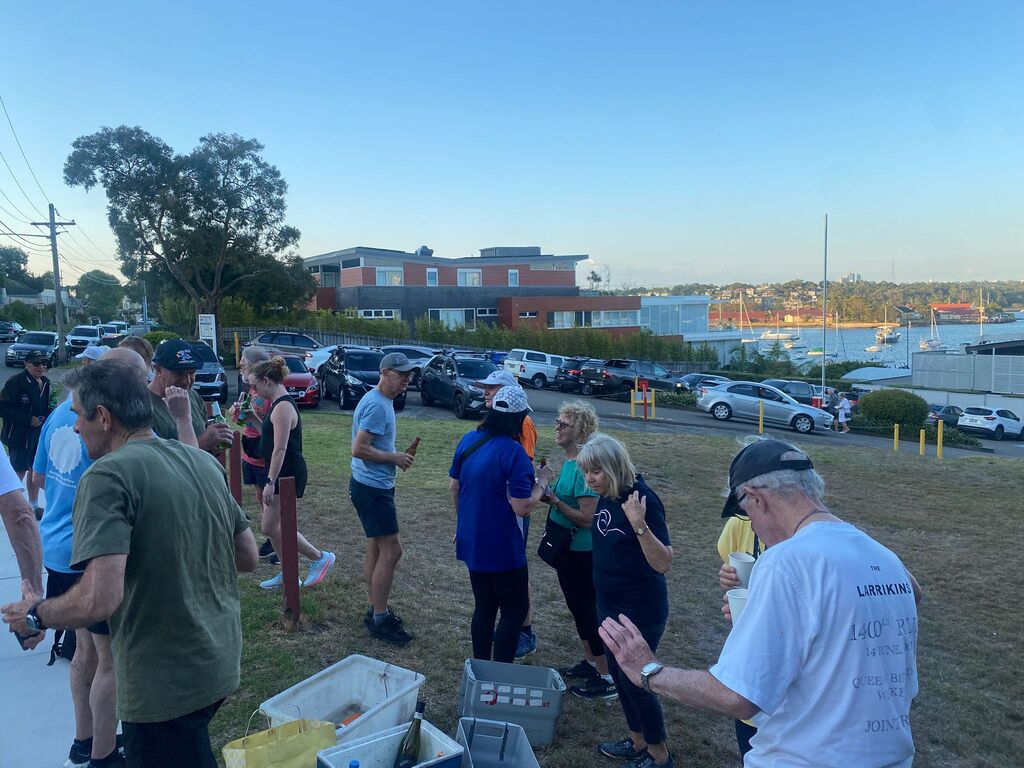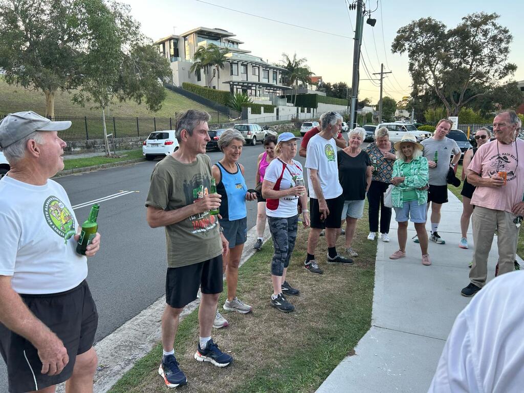 Crowd of about 25 for the circle with visitors Rocky and Berocca from the Noosa Larrikins. Mongrel ran the circle and when trying to give Chuck a down down couldn't remember her name. Anyway she was quite understanding about the faux pas. Noody was in town but could not make the run as he was drinking with Laundromat. Laundromat had arrived with the bucket in his car and looked like the same old Laundromat. Noddy must be getting soft living in Noosa.