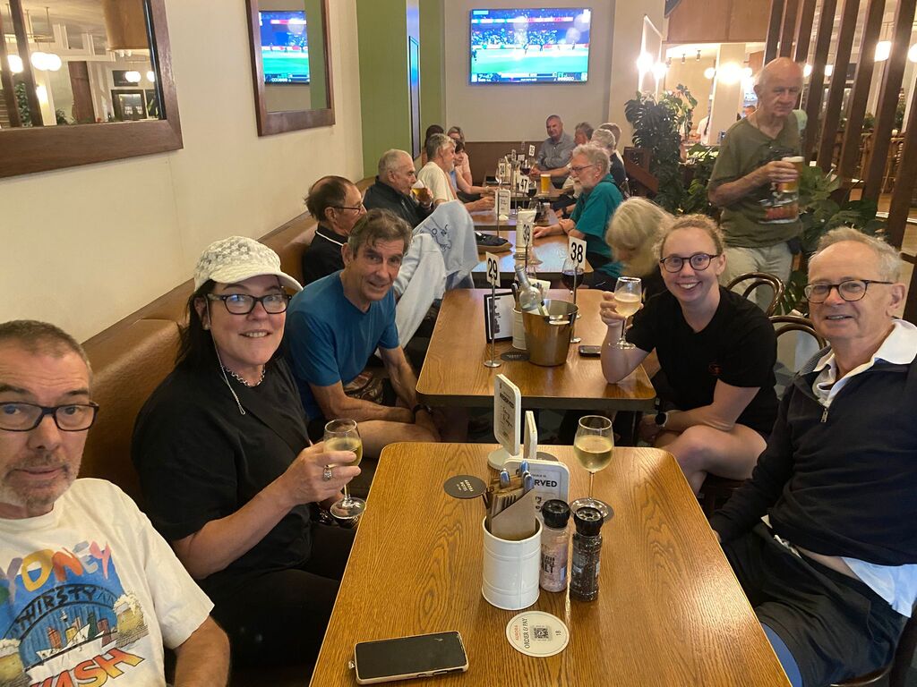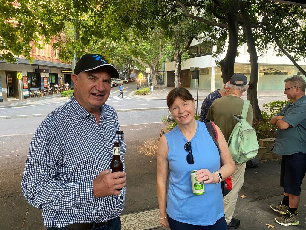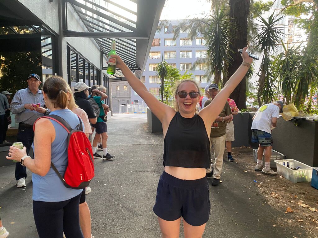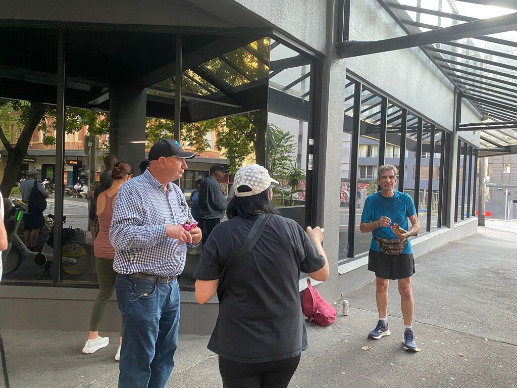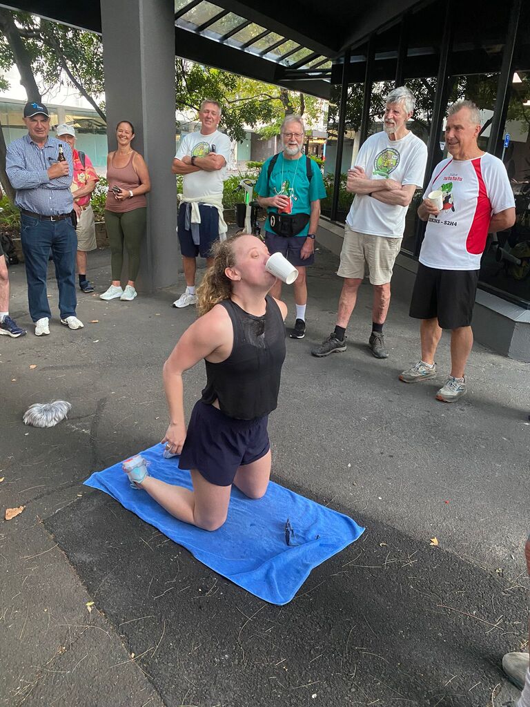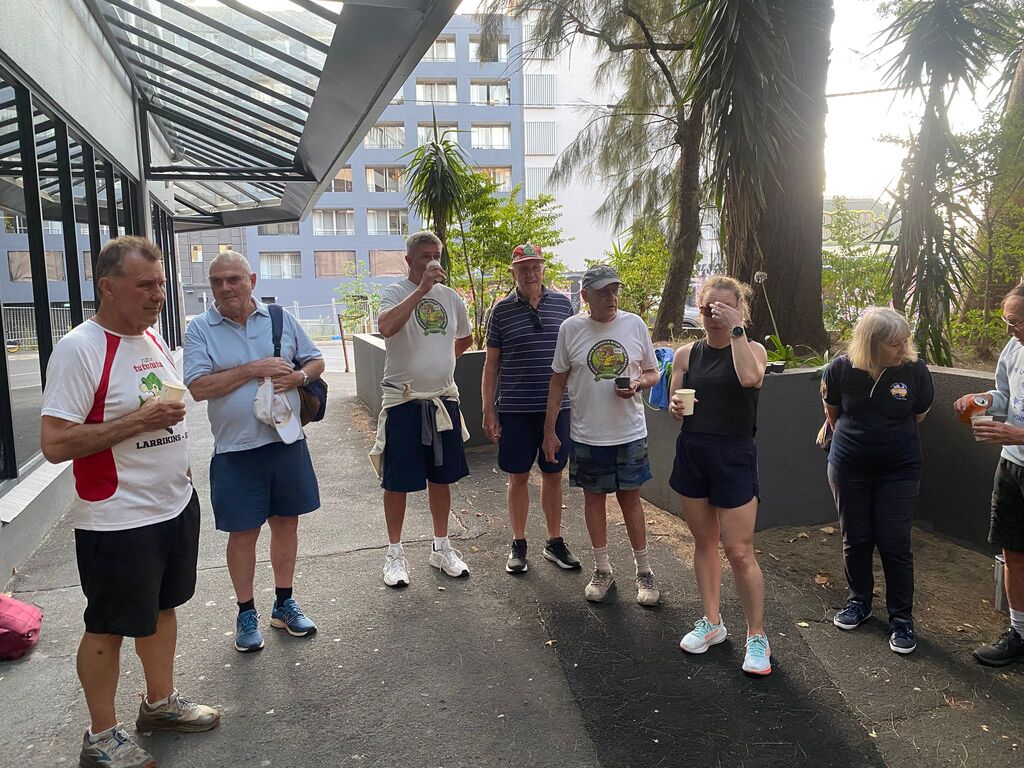On a supposedly rainy day in January. I set off to set the run on what turned out to be a beautiful day with the help of Outer, who kindly offered to help me. We met at the Aurora pub & split up the run. Outer doing the first part &the walkers and I the runners section. So, armed with chalk and maps, we set off in opposite directions. And pretty much completed the run within an hour & a half, meeting up back at the pub. Had a couple of beers while we waited for the pack to turn up. One concern we had was parking for. Laundromat & the bucket so we endeavoured to reserve places with E bikes which worked to a degree except people keep coming and taking the base. Having done a quick check at the Aurora pub to make sure they had our bookings in place; we found out they hadn't. So, we made sure that they had got our special location ready for us at 8:00, which they did. Eventually the pack gathered at the back of Central Station on the corner of Elizabeth & Randall St. About 25 people turned up and they set off walking and running. While. Outer and I guarded the bucket. About an hour later, the first runners started coming back followed closely by the walkers. Plus, a number of hashers turned up. directly to the bucket, Cultured, Bristle & Bren Gun. Bristle having missed the run drinking in the wrong Pub. After some socialising around a bucket, Mongrel started the circle. Giving. I and. Outer down downs as joint hares. After run reports by Mother for the Walkers run. Where his only comment was “did you see the tallest wooden building in the world?” Nobody had, but we let that one pass, and he gave us a score of. 9.1. He'll do. Gave the run report. and also gave us a great score of 9.9 ( I believe). So, We drank our down downs quite happy with the results. It seemed that everyone thought the run was pretty well marked and pretty good for a run through the centre of the city. Also, a very rare an unusual event occurred. Mongrel. Instigating the naming of a new hash member under the age of 40. Unbelievable what's happening to the hash. The young lady is now known by the hash name of Swifty and is a very welcome addition to the group. Also given down downs that evening were Virgin hashes. Liz and Steve, who joined us for the first time. Plus, sometime visitors. Inner and Mrs AfterBirth were also given down downs for guest appearances at the run. I can't think. Of any other. Announcements except Bristle announced. Top shelf whiskey at the pub for $11.00 a shot. So, on that note, we all headed across the road to the pub. $18.00 burgers were the special, but people ordered quite a wide range of. meals. In general, didn't hear any complaints, food came fast. Pub was comfortable and they provided a good area for the pack. All in All, a good venue , one I think we would probably go back to in the future. Not a bad run even if I say so myself. On On Afterbirth